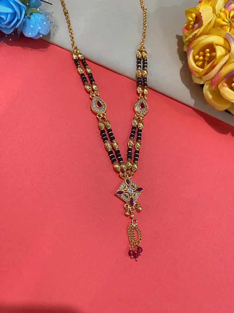 A Stunning High Gold Plated Ruby Stone Fancy Square Mangalsutra