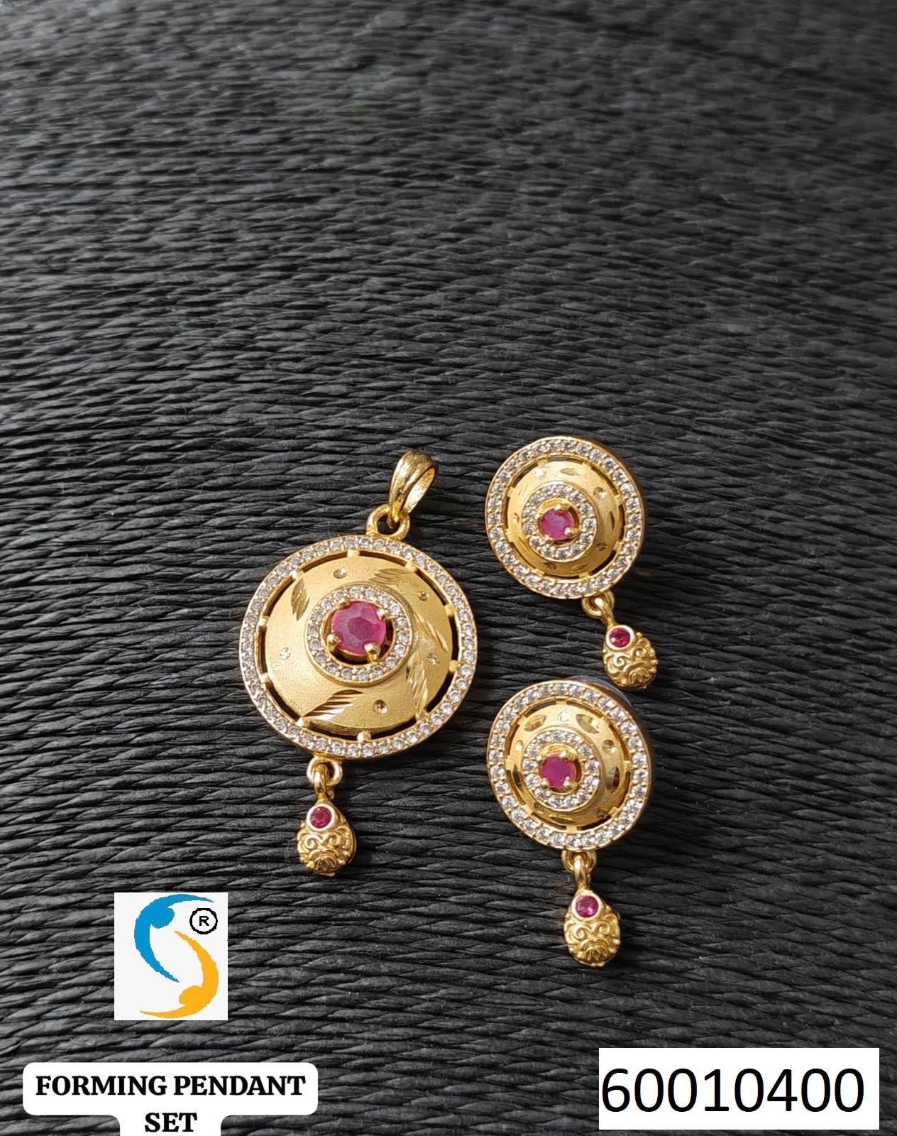 High Gold Plated Stunning American Diamond And Pink Diamond Studded Forming Designer Beautiful Round Pendent Set